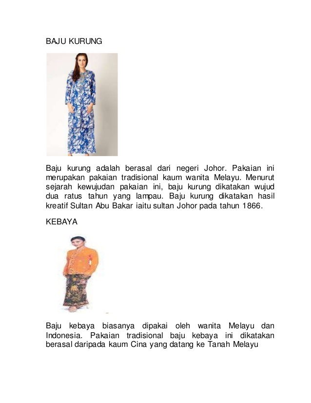 Kebaya is an upper garment opened at the front. Download Free PDF Download PDF Download Free PDF View PDF. Baju tradisional Melayu merujuk kepada baju tradisional orang Melayu terutamanya baju Melayu dan baju kurungSelain itu ia juga termasuk baju kebayadr Cfyutjenrhr celana kain sarung samping dan selendang.